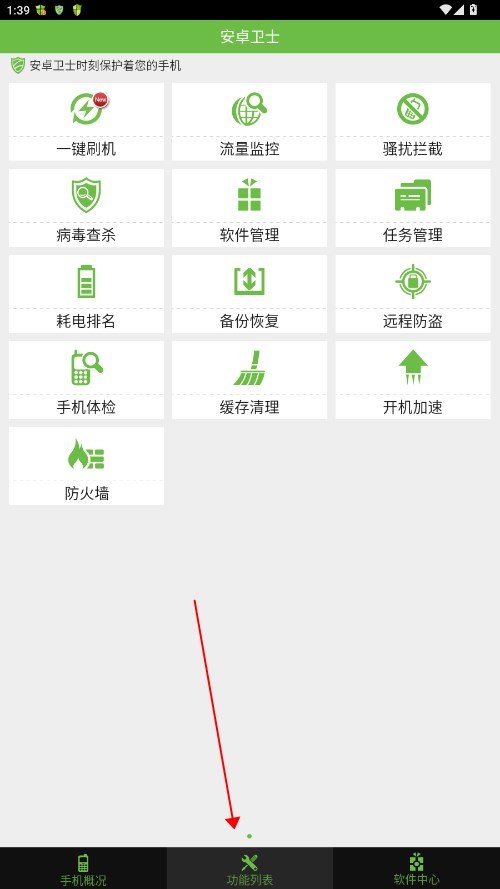功能列表涵盖丰富实用功能,时刻守护手机安全。