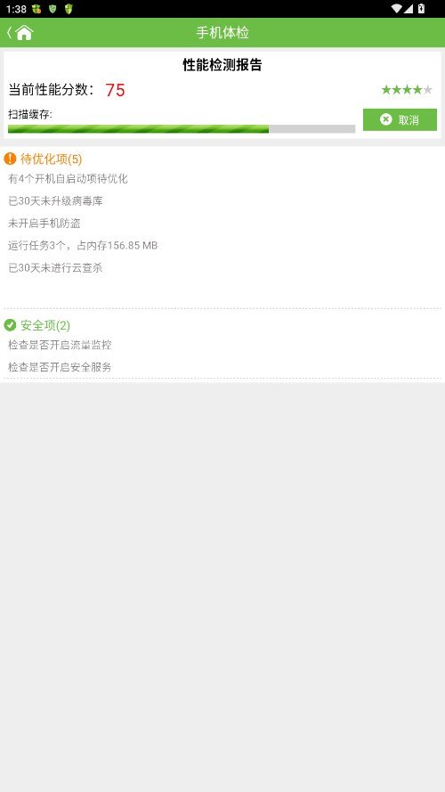 10、手机体检:对手机中有待优化的项目以及安全相关项目展开检测,从而获取自检报告与评分。