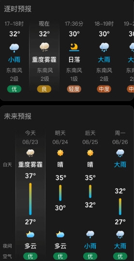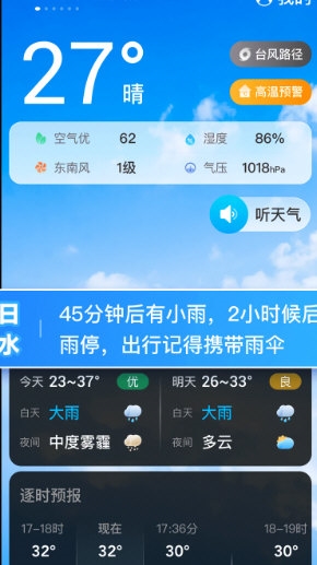 2、提供24小时全天候预报,天气实际状况清晰呈现,一目了然。