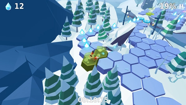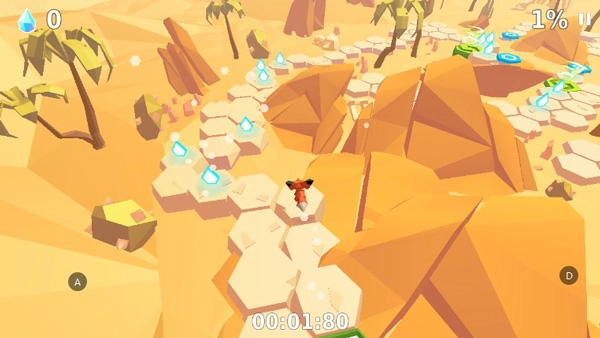 这款以狐狸为主角的游戏虽属跑酷品类,却跳出了同类作品的常规框架。它的美术与音效表现极为出色,采用全景旋转的3D呈现形式,色彩搭配克制而和谐,很对我的胃口。场景切换自然顺滑,背景音乐轻快活泼,那只小动物就像林间的精灵,在六边形构成的独特路径上,甩着标志性的红尾巴,一往无前地奔向远方。