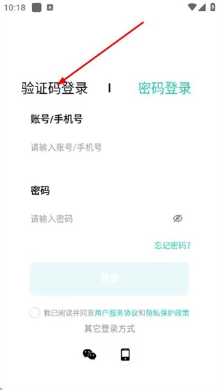 打开卫和健康软件,选择验证码登录方式,进入对应的登录页面。