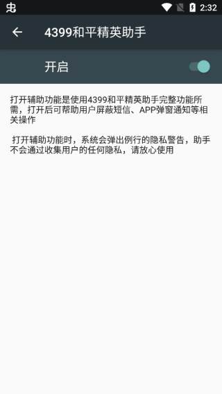打开4399和平精英助手,进入辅助功能板块,开启屏蔽功能。