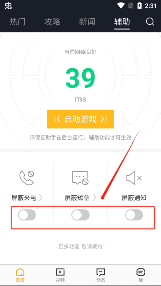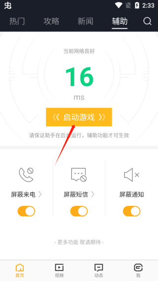 只需开启屏蔽来电、短信和通知的功能,接着点击启动游戏就可以了