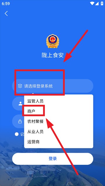 你可以点击选择登录系统,接着选择商户类型,然后输入用户名和密码,这样就能完成登录操作了。