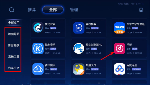 将所有适合车机的应用分类,让用户便捷查找应用