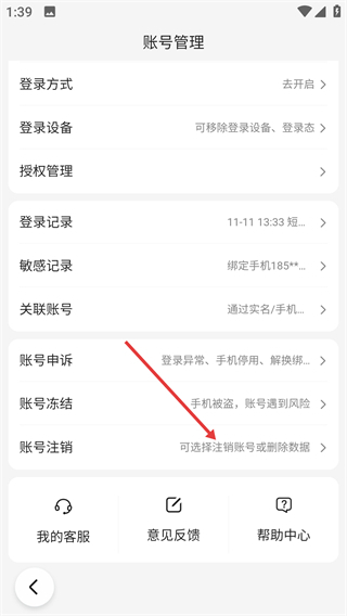 3、进入账号管理页面后,找到并点击【账号注销】选项,即可跳转至账号注销页面。