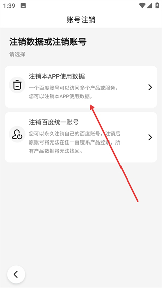 4、进入账号注销页面后,选择【注销本使用数据】这一选项,即可完成账号数据的注销流程。