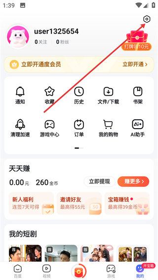1、点击个人中心页面右上角的设置图标,即可进入设置页面。