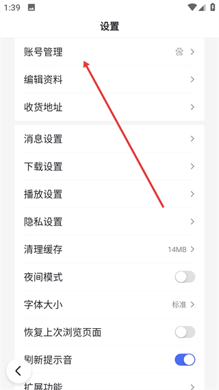2、进入设置页面后,点击【账号管理】这一选项,即可进入账号管理页面。