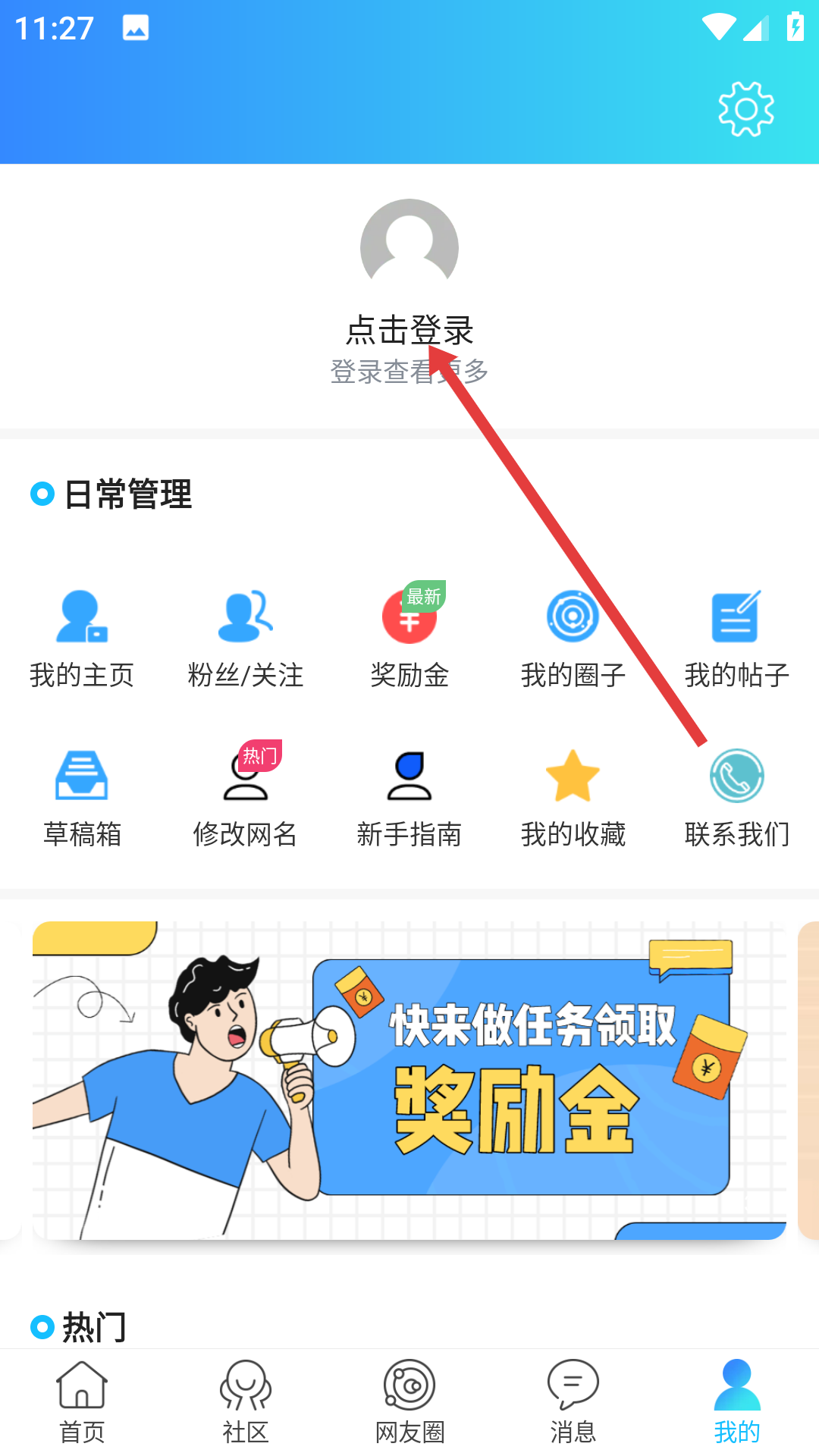 1、在【我的】页面找到并点击【点击登录】按钮,即可进入登录流程。
