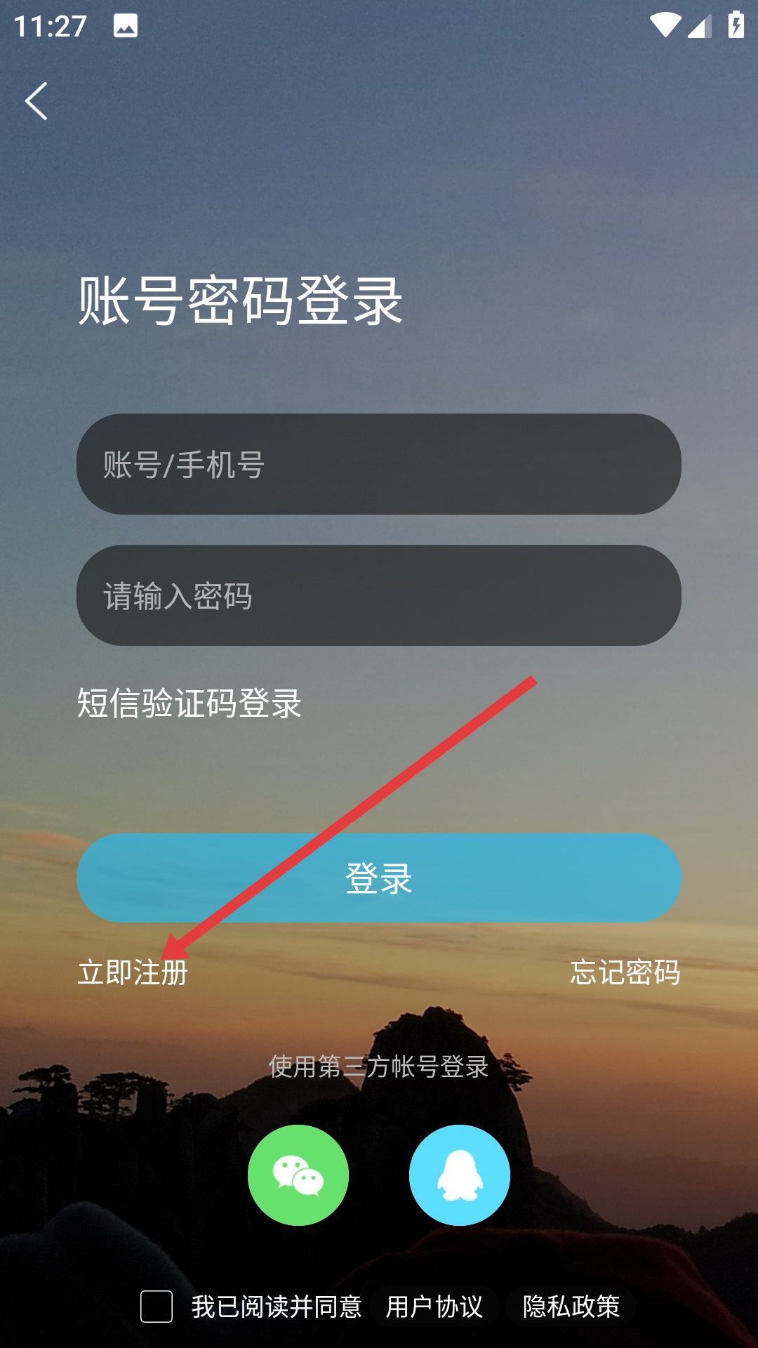 3、在登录界面点击【立即注册】按钮,即可进入注册流程。