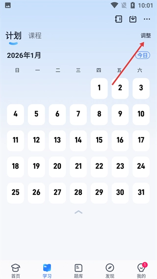 2、点击右上角【调整】按钮,进入计划列表界。