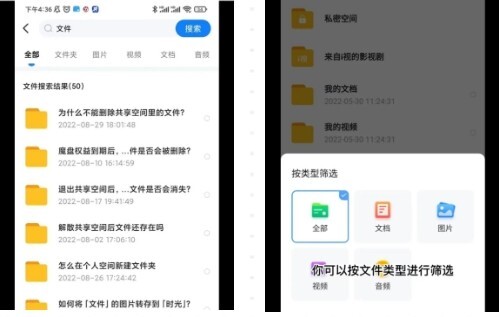 3. 具备个人文件与照片的AI智能分类功能,点击【搜索】,就能凭借关键词或者按【文件类型】实现快速查找。