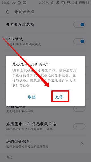 4、于系统设置里开启USB调试功能。