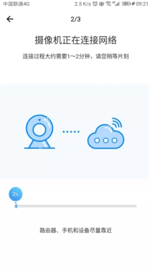 8、等待摄像机连接网络连接网络成功后等待进度走完。