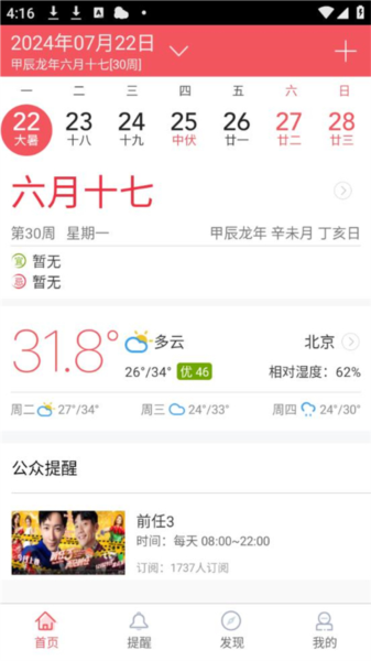 2、人生日历拥有简洁明了的界面设计,无论是天气预报还是其他各项功能,都清晰直观,能让用户在使用时轻松愉悦。